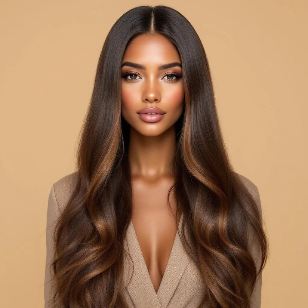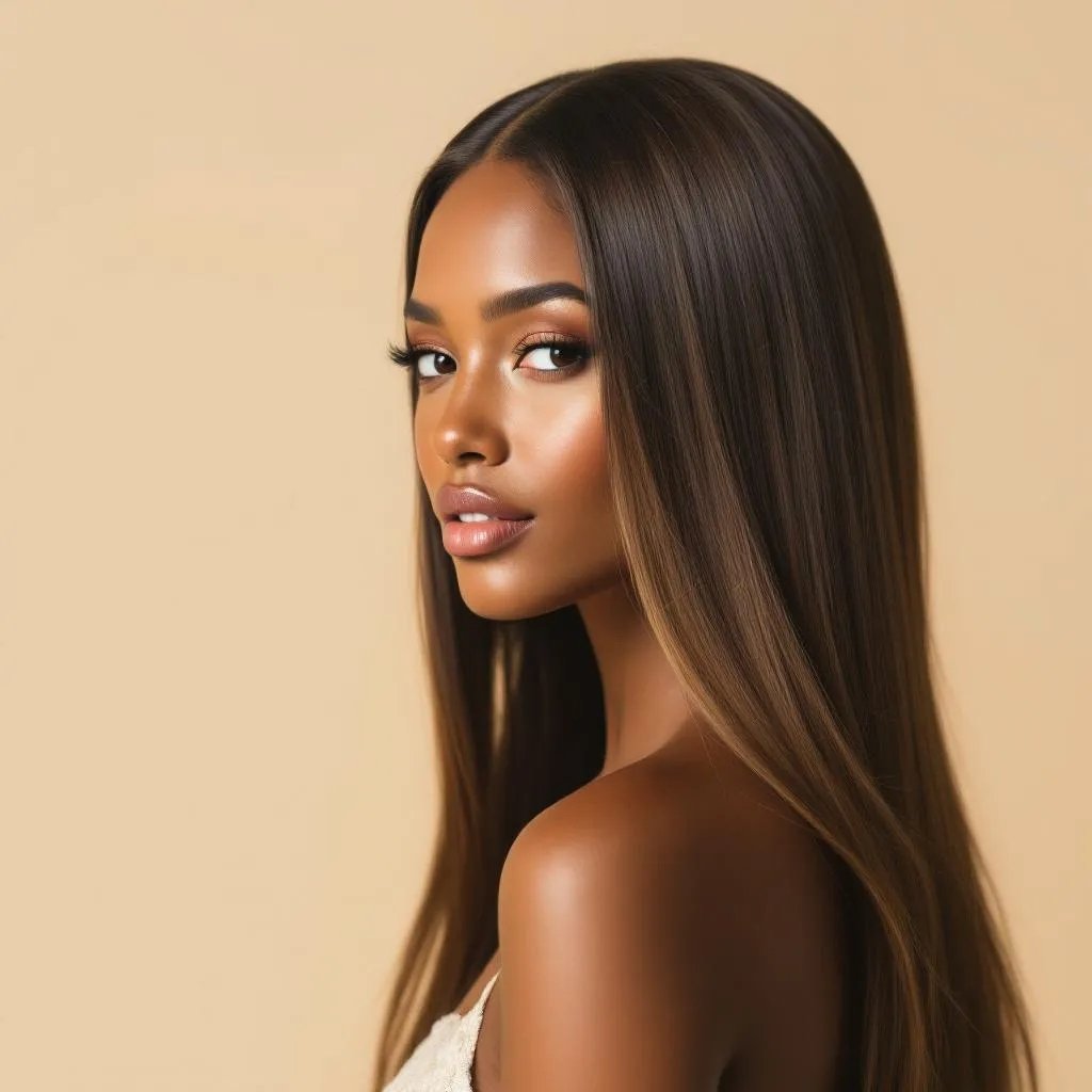 Sleek, polished, and effortlessly chic—Makeda is your go-to wig for a clean, modern look. At 26 inches, this bone straight unit features subtle light brown highlights that add a natural pop of color and dimension without overpowering your style.